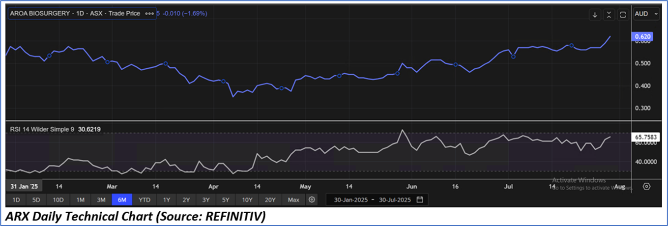 The stock price has gone up by ~6.90% in the last one month and over the last six months, stock prices increased by ~5.08%. The stock has a 52-week low and 52-week high of AUD 0.350 and AUD 0.815, respectively, and is currently trading above the average of the 52-week-high-low level. ARX was last covered in a report dated ‘29 May 2025’.