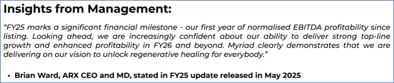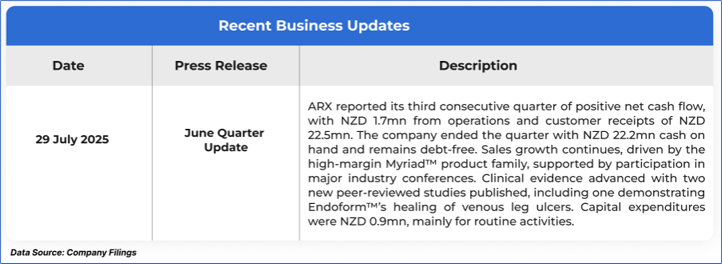 1.1: Company Overview: Aroa Biosurgery Limited (ASX: ARX) is a soft-tissue regeneration company dedicated to unlocking regenerative healing for everyone. The company develops and distributes advanced wound care and surgical products using its proprietary AROA ECM™ technology, derived from sheep forestomach. Its innovations support faster, more effective healing in complex wounds and soft tissue reconstruction. Kalkine’s Healthcare Report covers the Investment Highlights, Management Insights, Key Financial Metrics, Risks, Technical Analysis along with the Valuation, Target Price, and Recommendation on the stock.
