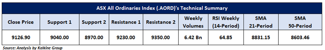 The ASX All-Ordinaries Index (.AORD) closed the week at 9,140.50, recording a weekly decline of 1.11%. While strength in U.S. equities provided a supportive global backdrop and attracted some buying interest, it was not enough to offset broader selling pressure across the Australian market.