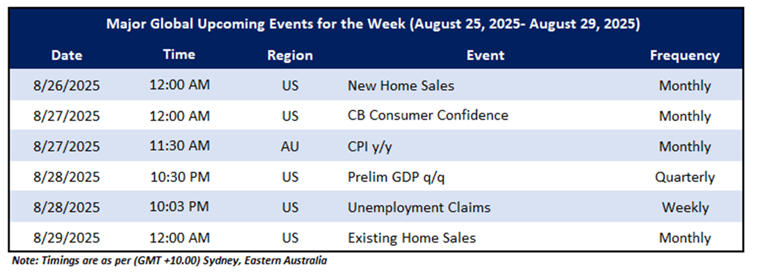 Market events occur on a day-to-day basis depending on the frequency of the data and generally include update on employment, inflation, GDP, consumer sentiments, etc. Noted below are the upcoming week's major global economic events that could impact the ASX All-Ordinaries Index and listed stocks’ prices: