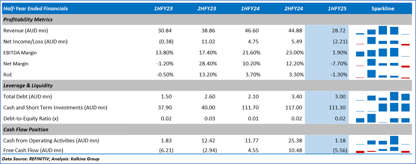 1.4: Key Metrics: AD8 registered a fixed asset turnover ratio of 5.66x in 1HFY25 compared with the industry median of 2.00x. Below is captured the metrics showing the trend of gross profit and cash and short term investments: