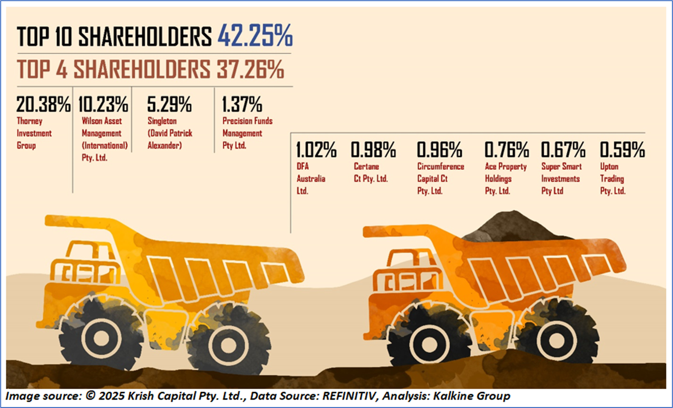The top 10 shareholders together form ~42.25% of the total shareholding. Thorney Investment Group and Wilson Asset Management (International) Pty. Ltd. hold maximum stakes in the company at ~20.38% and 10.23%, respectively.
