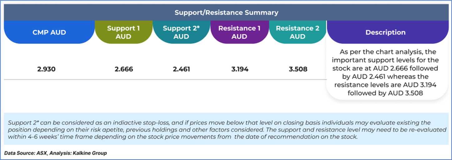 Note 3: Investment decisions should be made depending on an individual's appetite for upside potential, risks, holding duration, and any previous holdings. An 'Exit' from the stock can be considered if the Target Price mentioned as per the Valuation and or the technical levels provided has been achieved and is subject to the factors discussed above.