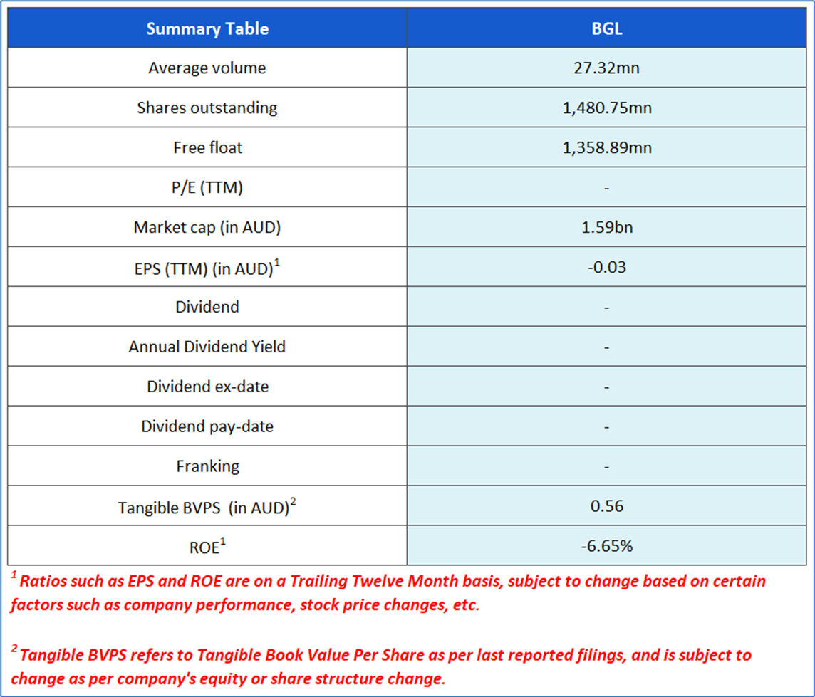 1.1: Company Overview: Bellevue Gold Limited (ASX: BGL) is a gold exploration and development company focused on the high-grade Bellevue Gold Project in Western Australia. The project is located ~40km northwest of Leinster in the prolific Goldfields region. BGL is transitioning into production, with modern infrastructure and growing output. Kalkine’s Gold Report covers the Investment Highlights, Management Insights, Key Financial Metrics, Risks, Technical Analysis along with the Valuation, Target Price, and Recommendation on the stock.