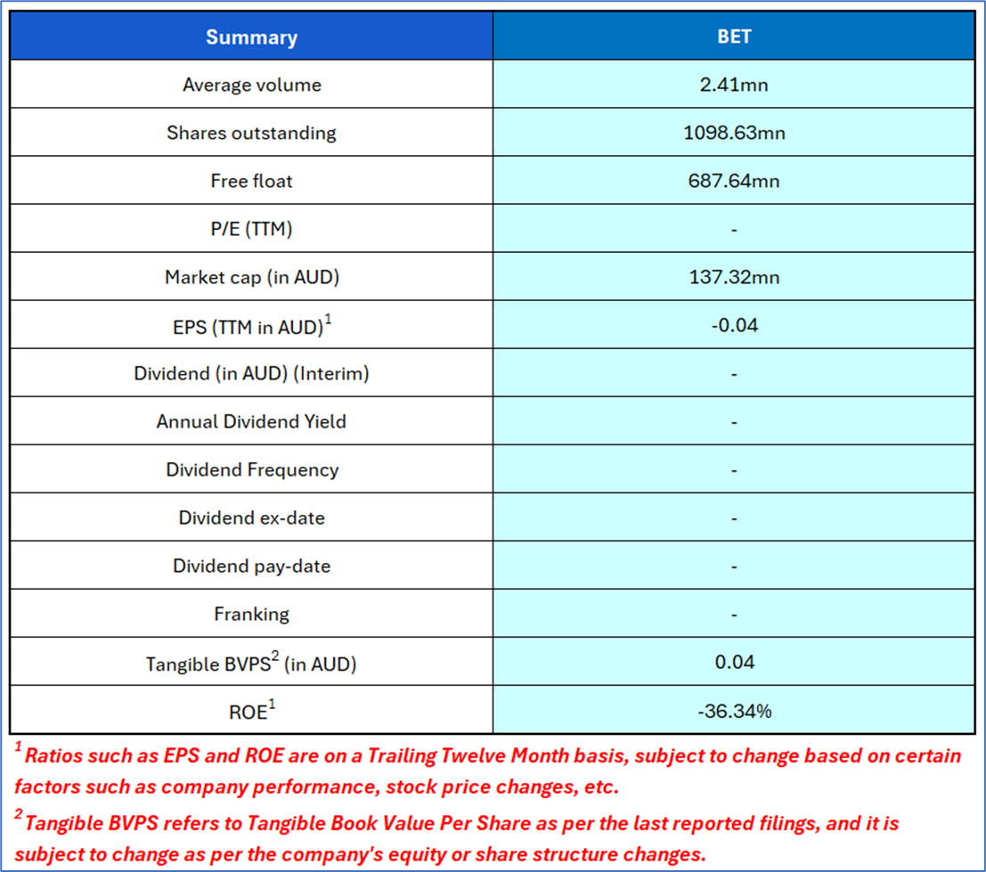 Company Overview: BetMakers Technology Group Ltd (ASX: BET) provides wagering technology, data, and analytics for B2B clients across key global markets. It operates through Global Betting Services and Global Tote, supporting racing bodies with content, platforms, and tote solutions. Kalkine’s Global Travel and Leisure Report covers the Investment Highlights, Key Financial Metrics, Risks, and Technical Analysis along with the Valuation, Target Price, and Recommendation on the stock.
