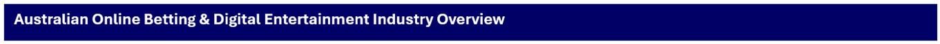 Australia’s online betting and digital entertainment sector has expanded rapidly over the past decade, supported by strong consumer demand for mobile-first wagering platforms, regulatory clarity, and the increasing integration of gaming and real-time sports content. The industry sits within the broader AUD 10 to 12 billion wagering ecosystems, with online channels capturing an ever-growing share as traditional retail betting continues to decline. High smartphone penetration, widespread sports engagement, and the shift toward personalised digital experiences have accelerated the move to app-based wagering.