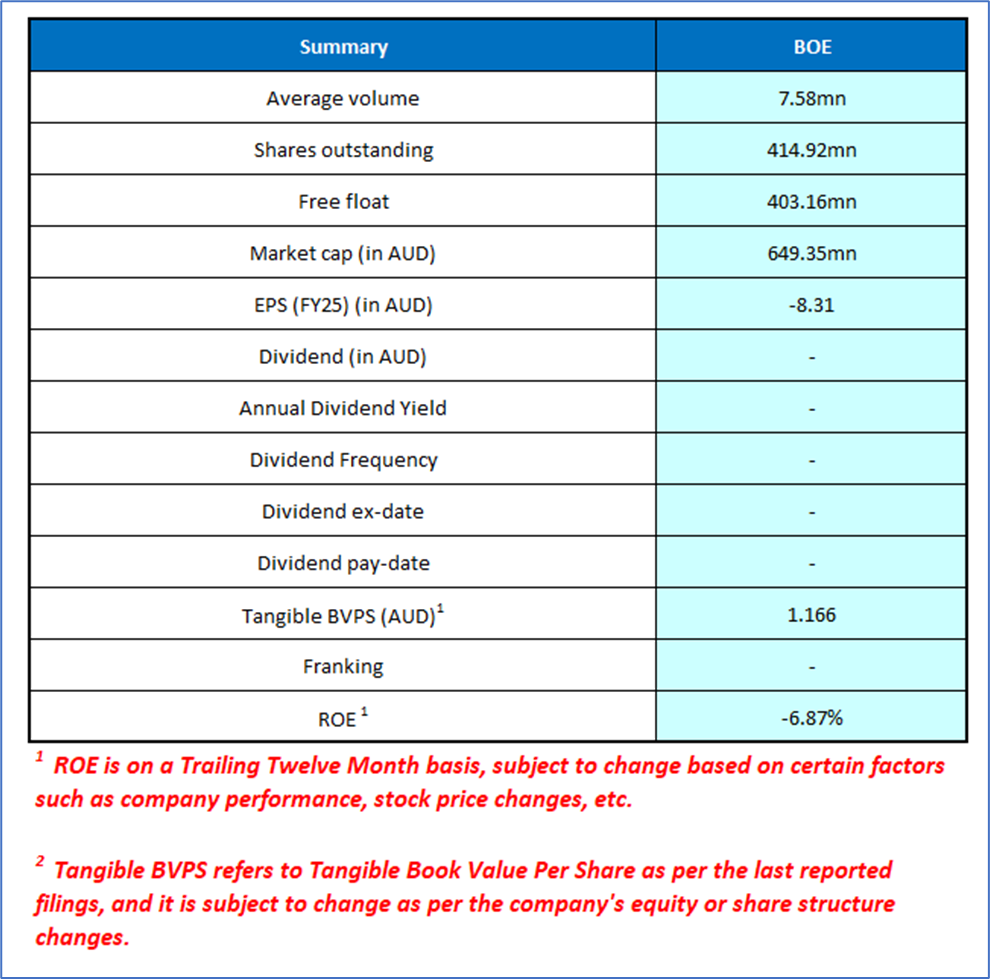 1.1 Company Overview: Boss Energy Ltd (ASX: BOE) is engaged into uranium mining productions and operates world-class in-situ recovery (ISR) projects across Australia and the United States. The company’s flagship asset is the 100%-owned Honeymoon Uranium Project in South Australia, which employs low-cost, environmentally responsible ISR mining technology to supply uranium for the global nuclear energy market. Boss Energy also holds a 30% interest in the Alta Mesa Uranium Project in Texas, further expanding its footprint and production capacity. Kalkine’s Resources Report covers the Investment Highlights, Management Insights, Key Financial Metrics, Risks, Technical Analysis along with the Valuation, Target Price, and Recommendation on the stock.
