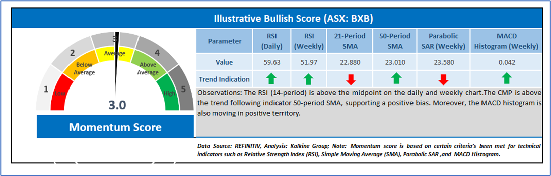 The Report covers the Price Action, Technical Indicators Analysis along with the Target Levels, Stop Loss, and Recommendation on this stock. Noted below is the illustrative momentum score based on technical indicators for the stock: