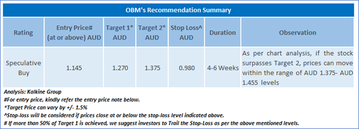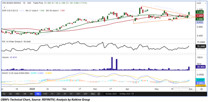 As per the above-mentioned price action and technical indicators analysis, a ‘Speculative Buy’ rating has been given on Ora Banda Mining Limited (ASX: OBM) at closing price of AUD 1.145 as on May 30, 2025.