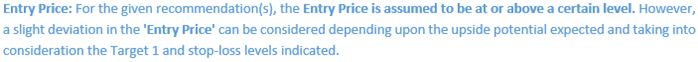 Note 4: The holding duration for recommendations is 4-6 weeks; however, an extension of a further 2 weeks may be considered with an update report in case the opportunity looks technically well placed. The maximum holding duration is expected to be 8 weeks post which the position will be closed automatically in case no resistance, support and or stop loss levels are hit at the close price of the due date.