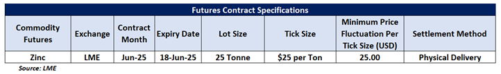 Having understood the global commodities’ performance over the past week, taking cues from major global economic events, and based on technical analysis, noted below is the recommendation with generic insights, entry price, target prices, and stop-loss Zinc June Future (LME: CMZNM25) for the next 2-4 weeks duration: