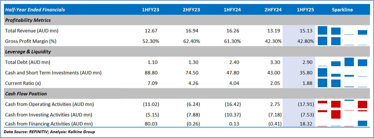 1.4 Key Metrics: CXL’s current ratio was recorded at 1.88x in 1HFY25 compared to the industry median of 1.37x. Below are captured other metrics:
