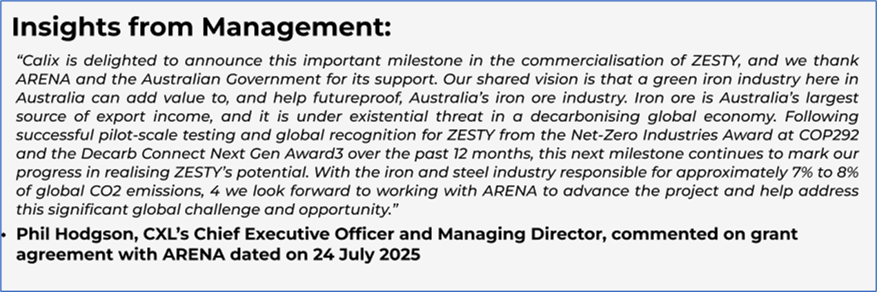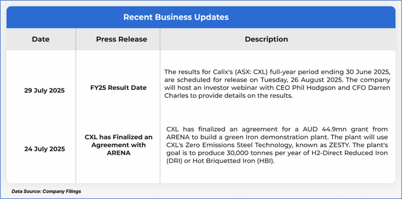 1.1: Company Overview: Calix Limited (ASX: CXL) is an environmental technology firm focused on addressing major global issues in industrial decarbonization and sustainability. Its patented core technology platform provides an efficient, precise, and flexible way to process metals and minerals using indirect heating, which can be renewably powered and captures unavoidable industrial emissions. Kalkine’s Penny Stocks Report covers the Investment Highlights, Key Financial Metrics, Risks, and Technical Analysis along with the Valuation, Target Price, and Recommendation on the stock.