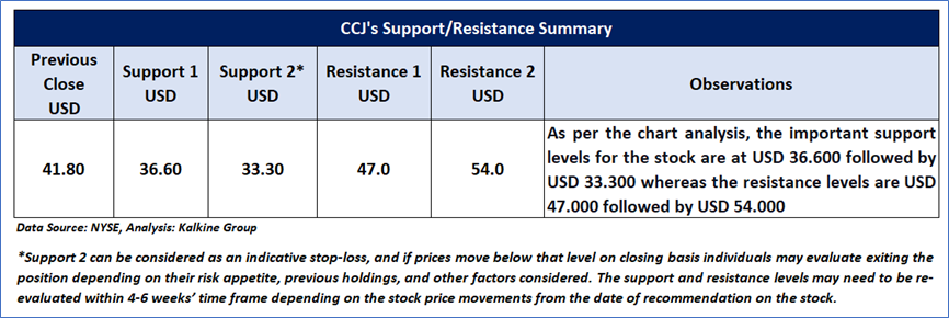 CCJ Daily Technical Chart, Data Source: REFINITIV