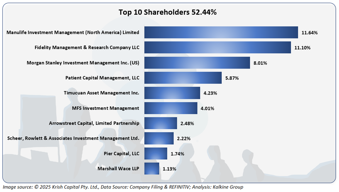 The top 10 shareholders together form ~52.44% of the total shareholding. Manulife Investment Management (North America) Limited and Fidelity Management & Research Company LLC hold a maximum stake in the company at ~11.64% and ~ 11.10%, respectively.