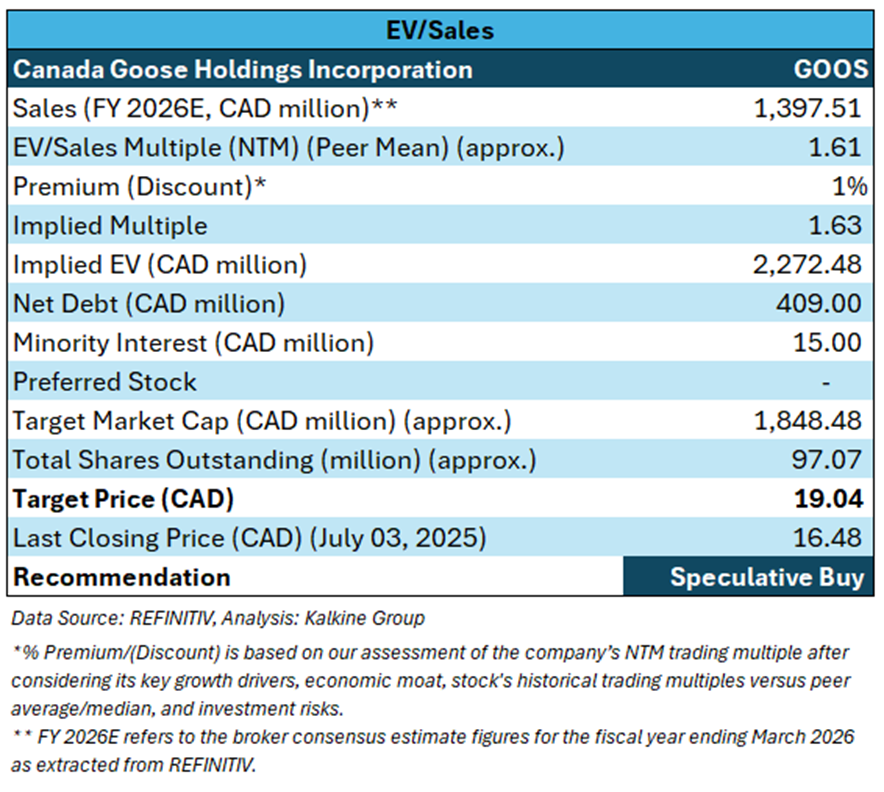 Valuation Methodology: EV to Sales Multiple Based Relative Valuation (Illustrative):