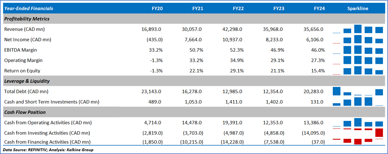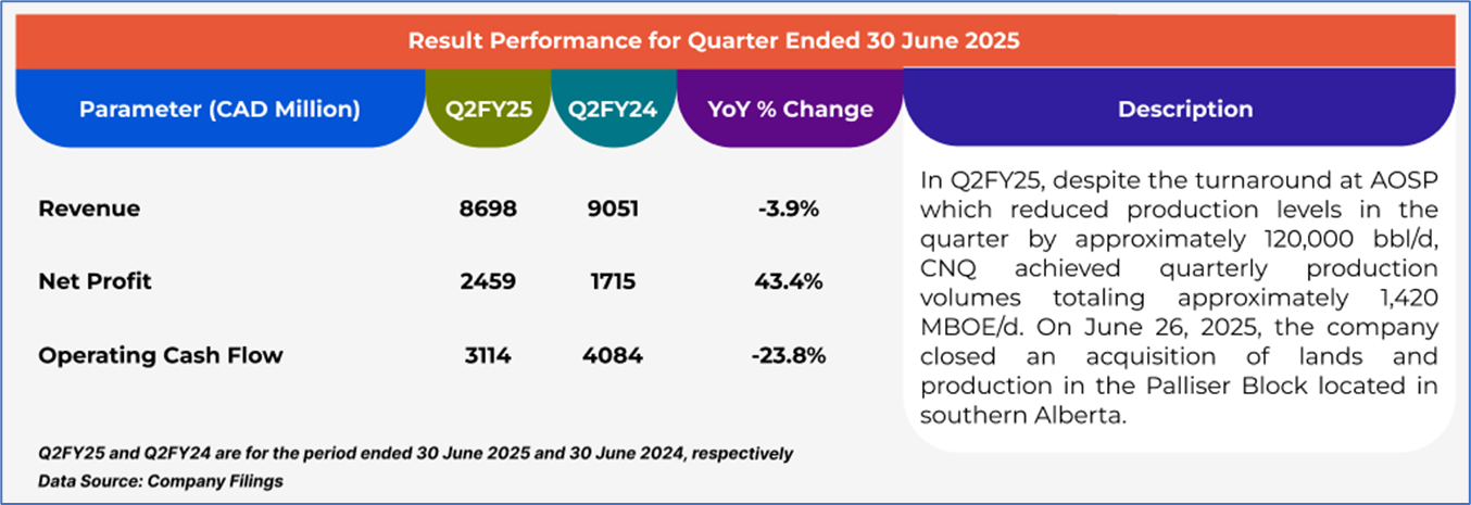1.4 Key Metrics: In Q2FY25, CNQ's net profit rose ~43% annually to CAD 2,459mn vs CAD 1,715mm in Q2FY24. Below are captured other metrics:
