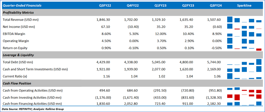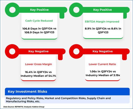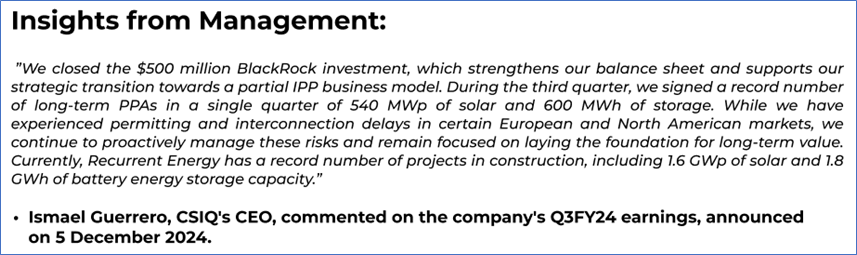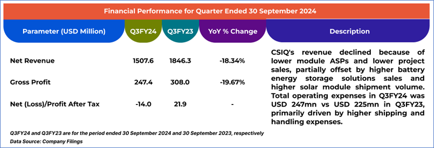 1.4 Key Metrics: In Q3FY24, CSIQ's cash cycle reduced to 106.8 days from 108.9 days in Q3FY23. Below are captured other metrics: