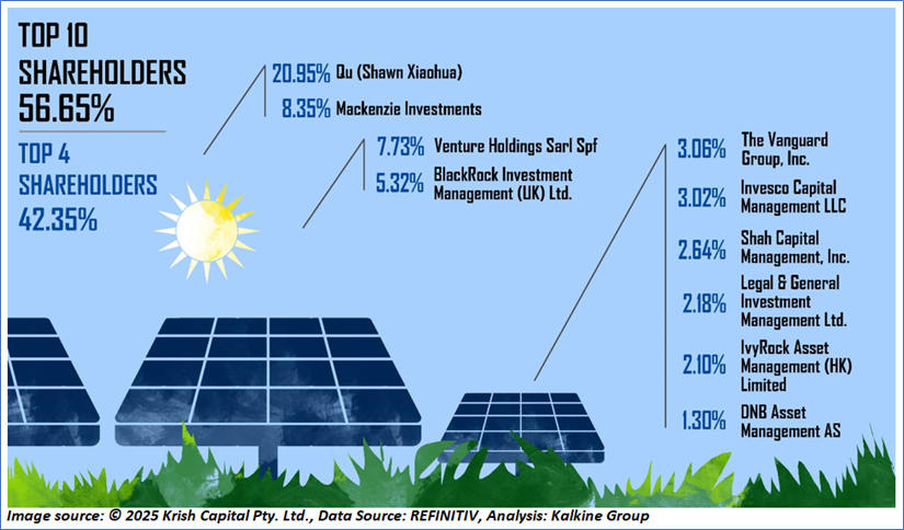 The top 10 shareholders together form ~56.65% of the total shareholding. Qu (Shawn Xiaohua) and Mackenzie Investments hold maximum stakes in the company at ~20.95% and ~8.35%, respectively.