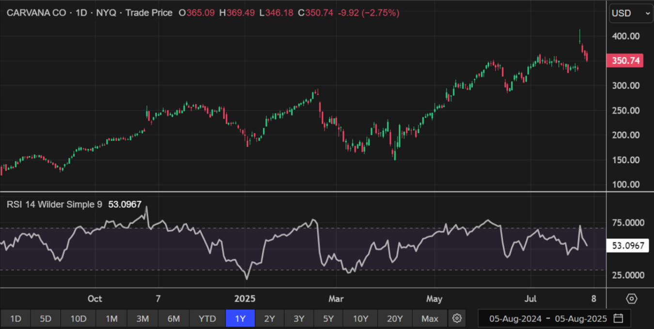 CVNA Daily Technical Chart, Data Source: REFINITIV