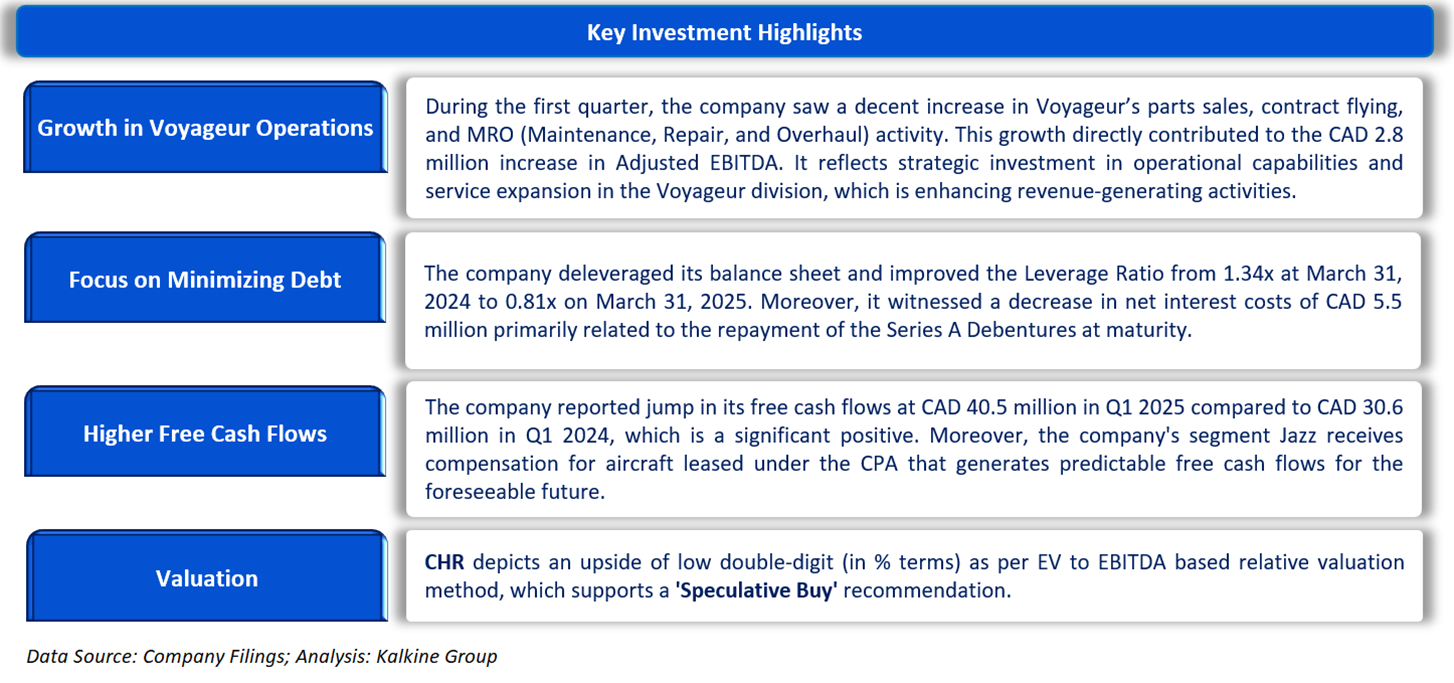 Chorus Aviation Inc. (TSX: CHR) is a Canadian holding company. It aims to deliver regional aviation to the world through its businesses. It specializes in contract flying, maintenance, repair and overhaul, and aircraft leasing solutions. The company operates in two segments, namely, Regional Aviation Services and Regional Aircraft Leasing and generates maximum revenue from the Regional Aviation Services segment.