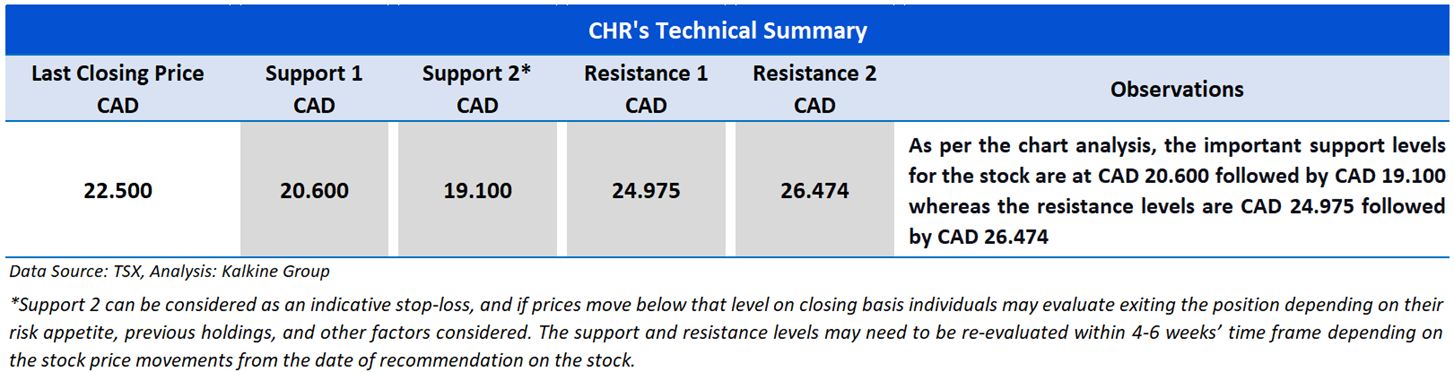 The stock has witnessed an upside of ~10.02% and ~8.12% over the last 1 week and 1 month respectively. Moreover, the stock is trading above the average 52-week high price of CAD 24.08 and 52-week low price of CAD 16.73, providing an opportunity to ride the trend.