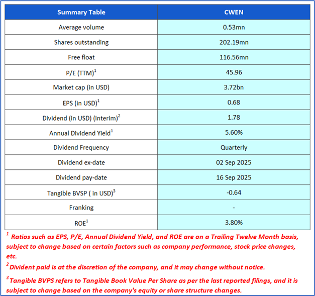 Company Overview: Clearway Energy, Inc. (NYSE: CWEN) is a renewable energy company. It invests in energy infrastructures and focuses on investments in clean energy and owns modern, sustainable and long-term contracted assets across North America. Its businesses are segregated based on conventional power generation and renewable businesses, which consist of solar, wind and energy storage. Kalkine’s Global Green Report covers the Investment Highlights, Management Insights, Key Financial Metrics, Risks, and Technical Analysis along with the Valuation, Target Price, and Recommendation on the stock.