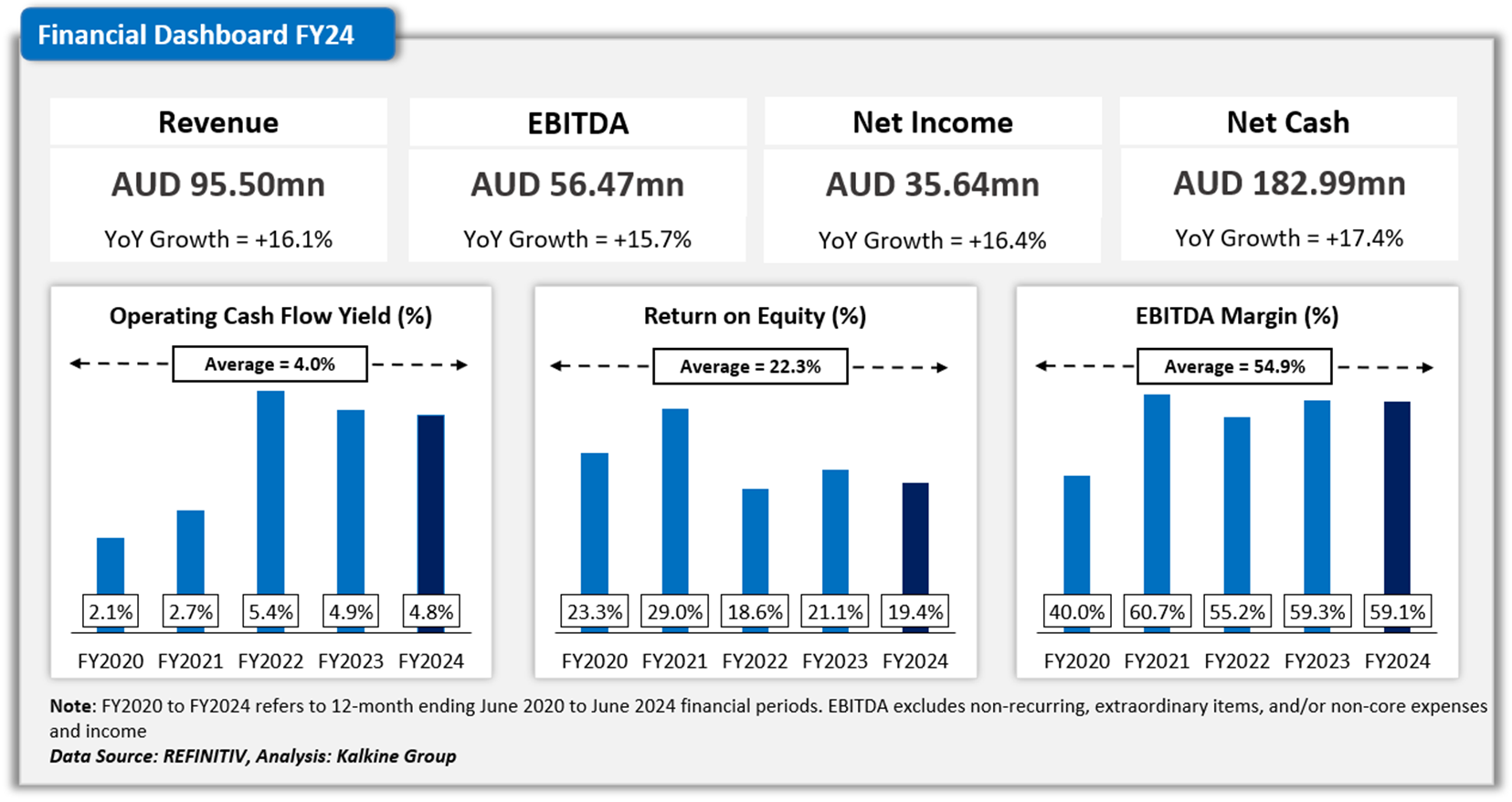 This Report may contain information on past performance of particular investments. Past performance is not a reliable indicator of future performance. Returns stated do not take into account transaction costs and taxes. To the extent permitted by law, and excluding any dishonesty or gross negligence by Kalkine, Kalkine disclaims and excludes all liability for any direct, indirect, implied, punitive, special, incidental or other consequential loss or damage arising from the use of or reliance on this Report, the Kalkine website and any information published on the Kalkine website without any warranties or representations by Kalkine to you. To the extent the law prohibits or limits this exclusion, Kalkine limits its liability to the resupply of services.