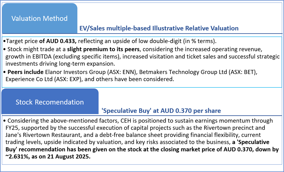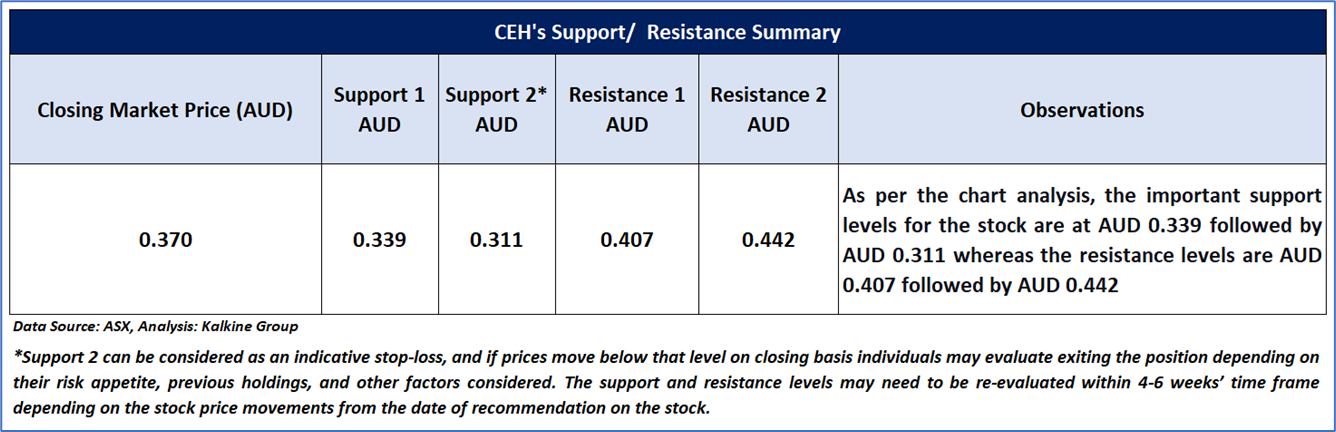 The stock has decreased by ~10.84% in the last three months, whereas over the past one year, stock has decreased by ~26.00%. The stock has a 52-week low and 52-week high of AUD 0.317 and AUD 0.535, respectively, and is currently trading below the 52-week high-low average. The CEH was last covered in a report dated ‘24 December 2024’.
