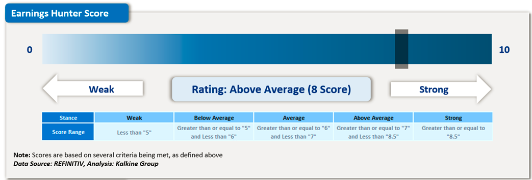 Note 3: Investment decision should be made depending on an individual's appetite for upside potential, risks, holding duration, and any previous holdings. The ‘Earnings Hunter Score’ typically provides an indication on the stance of the stock based on certain earnings-related criteria and the company’s performance versus the historical average and peers’ median.