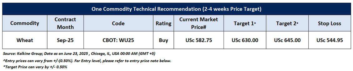 Having understood the global commodities’ performance over the past week, taking cues from major global economic events, and based on technical analysis, noted below is the recommendation with generic insights, entry price, target prices, and stop-loss Wheat September Future (CBOT: WU25) for the next 2-4-week duration: