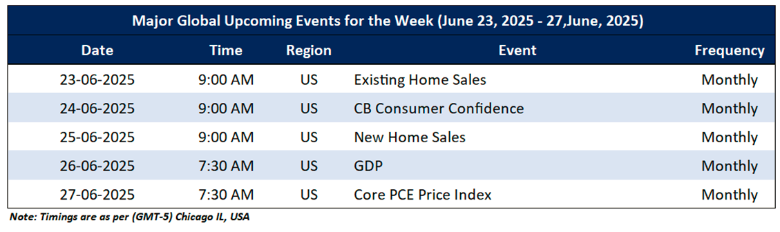 Market events occur on a day-to-day basis depending on the frequency of the data and generally include an update on employment, inflation, GDP, WASDE report, consumer sentiments, etc. Noted below are the upcoming week's major global economic events that could impact commodities’ prices: