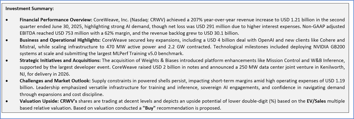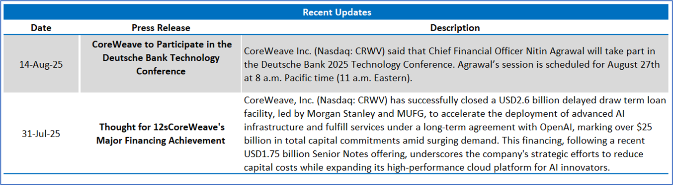 CoreWeave, Inc. (NASDAQ: CRWV) is a cloud infrastructure technology company. The Company offers the CoreWeave Cloud Platform, which consists of software and cloud services that deliver the automation and efficiency needed to manage complex artificial intelligence (AI) infrastructure.