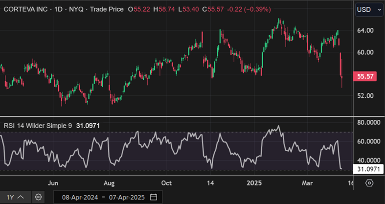 CTVA Daily Technical Chart, Data Source: REFINITIV
