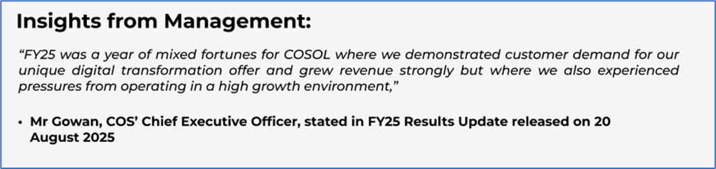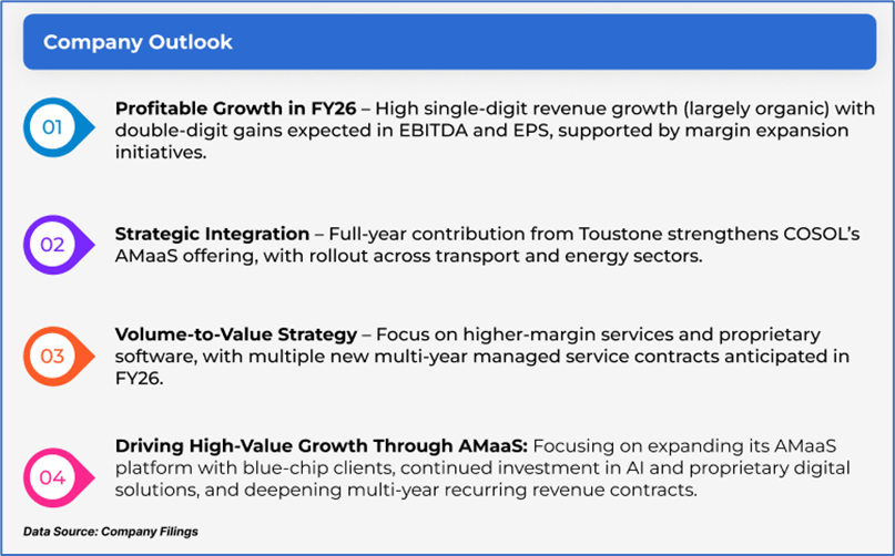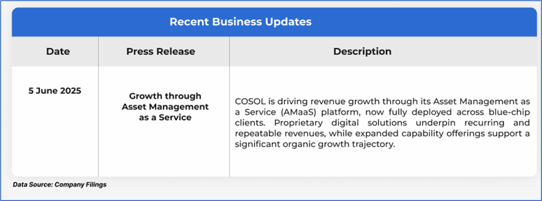 1.1: Company Overview: COSOL Limited (ASX: COS) is a global provider of technology-enabled asset management solutions, supporting asset-intensive industries such as natural resources, energy, utilities, infrastructure, and defence. The company delivers advisory services, operational expertise, and business optimisation strategies to help clients enhance performance, streamline supply chains, and achieve sustainable economic outcomes. Kalkine’s Technology Report covers the Investment Highlights, Management Insights, Key Financial Metrics, Risks, Technical Analysis along with the Valuation, Target Price, and Recommendation on the stock.