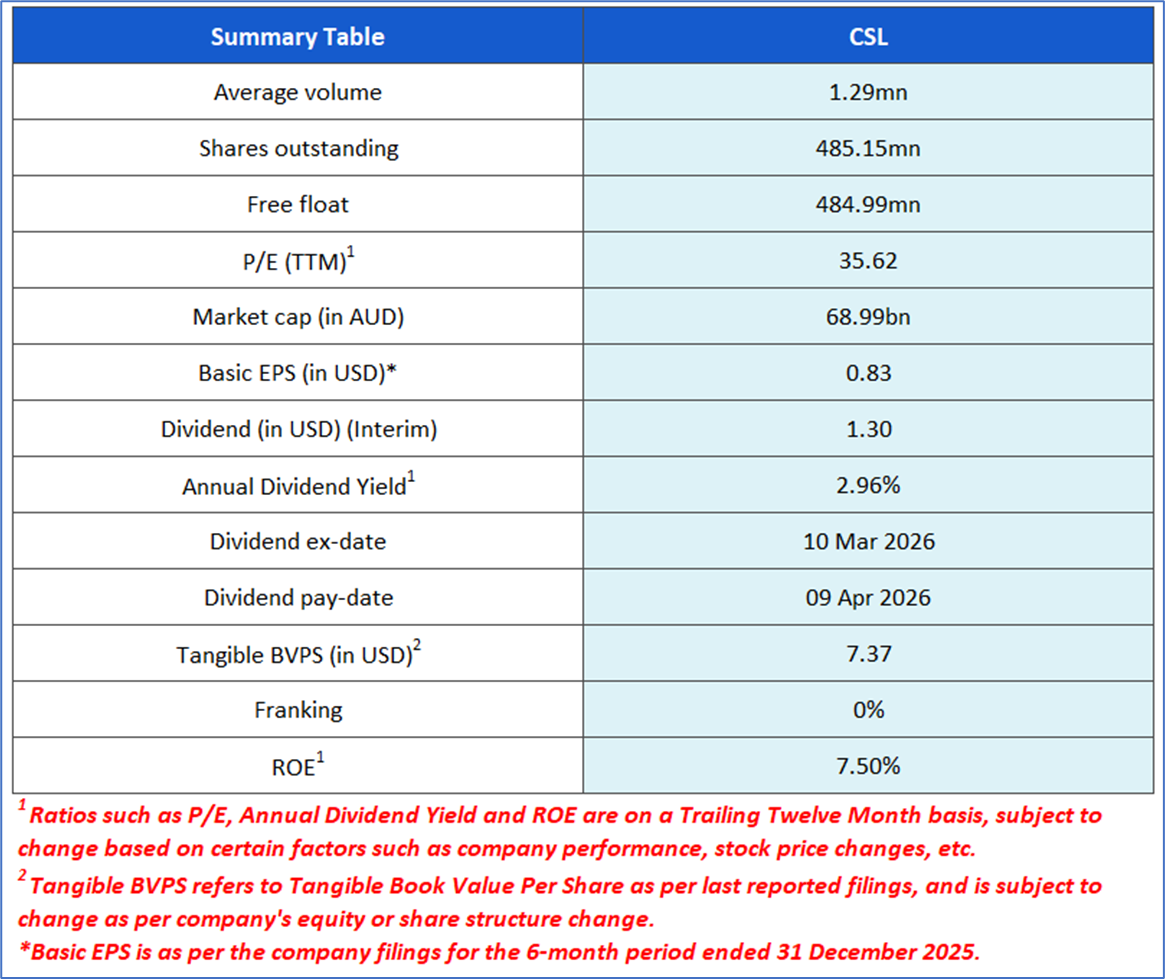 1.1: Company Overview: CSL Limited (ASX: CSL) is engaged in the research, development, manufacturing, marketing and distribution of biopharmaceutical products and vaccines. The ASX-listed biotechnology company includes three businesses, CSL Behring, CSL Seqirus and CSL Vifor. The company delivers innovative life-saving medicines in over 100 countries. Kalkine’s Healthcare Report covers the Investment Highlights, Management Insights, Key Financial Metrics, Risks, Technical Analysis along with the Valuation, Target Price, and Recommendation on the stock.
