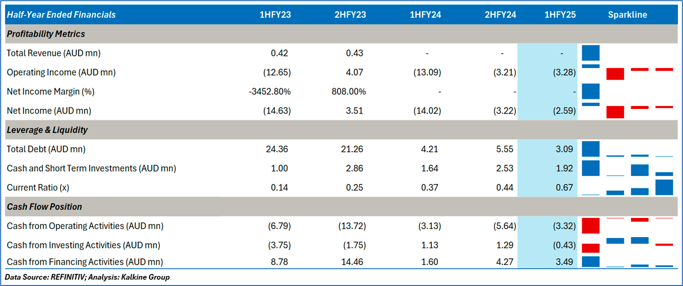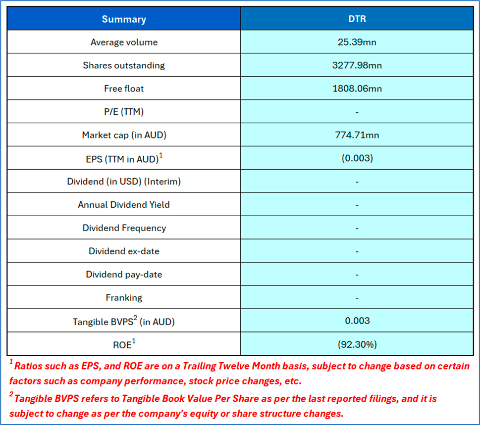 1.4 Key Metrics: DTR’s net assets increased to AUD 6.59mn as of 31 December 2024 compared to AUD 3.59mn as of 30 June 2024. Below is captured other metrics: