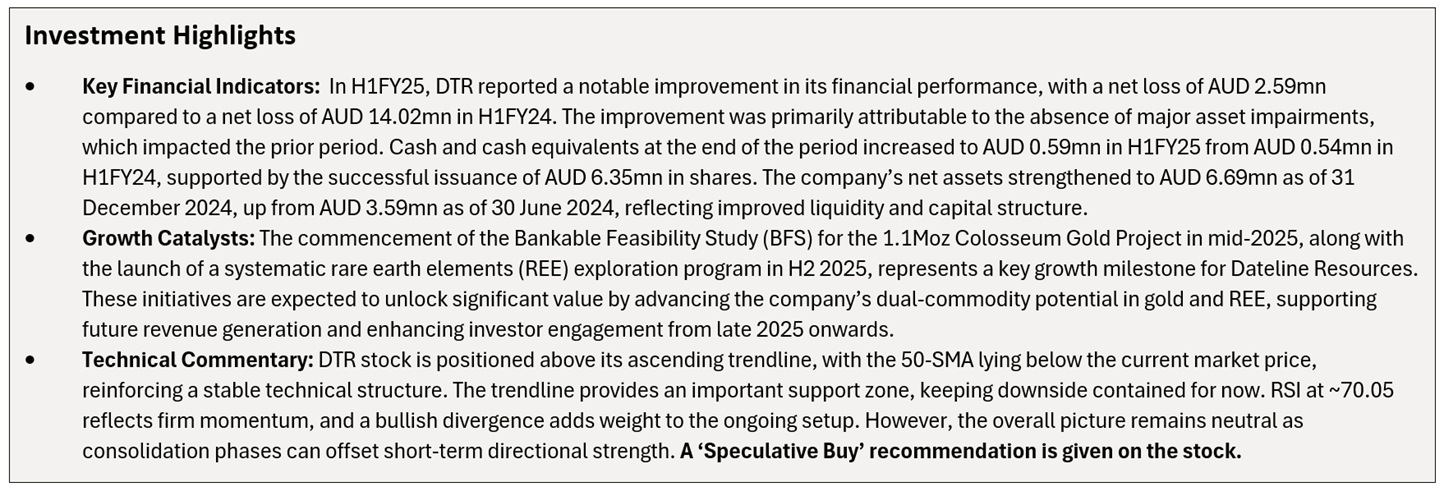 Amid elevated Market Volatility and Tariff pressures, Dateline Resources Limited (ASX: DTR) stands out as a defensive pick within the gold sector, supported by rigorous fundamental and technical research