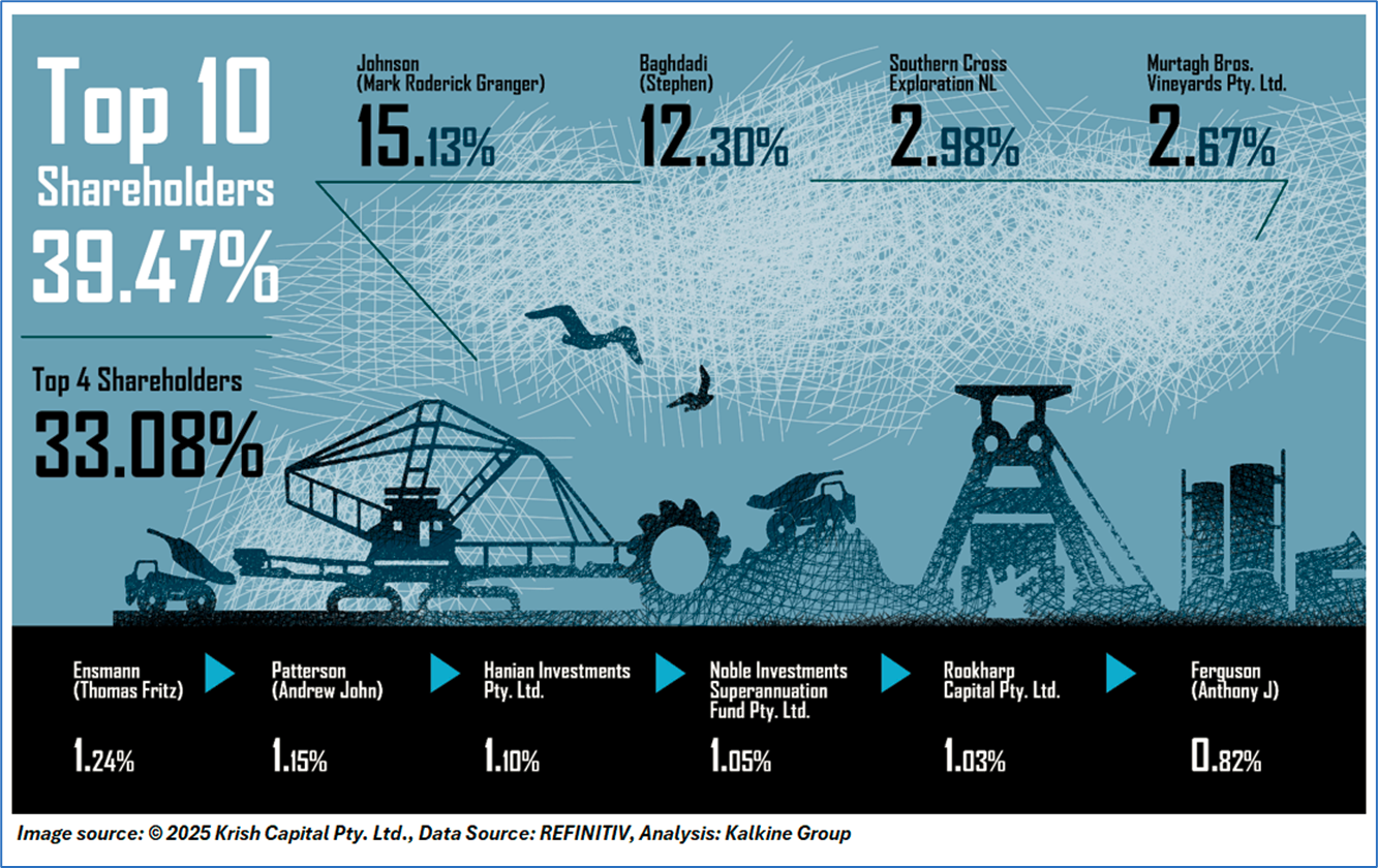 The top 10 shareholders together form ~39.47% of the total shareholding. Johnson (Mark Roderick Granger), Baghdadi (Stephen) hold maximum stakes of 15.13% and 12.30%, respectively.