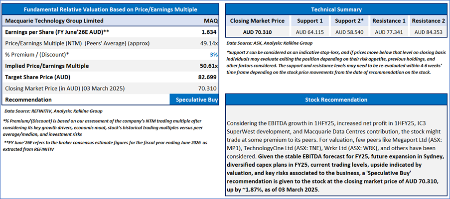 2) Macquarie Technology Group Limited (ASX: MAQ) (Recommendation: ‘Speculative Buy’ at AUD 70.310, Potential Upside: Low Double-Digit) (M-cap: AUD 1.77bn)
