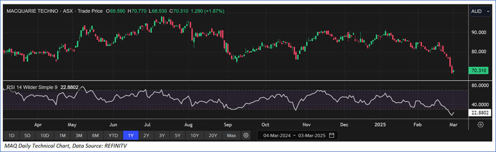 The stock has witnessed a correction of ~16.06% in last nine months, and over the past three months, it has decreased by ~20.07%. The stock has a 52-week low and 52-week high of AUD 68.530 and AUD 98.350, respectively, and is currently trading below the 52-week high-low average. MAQ was last covered in a report dated ‘06 January 2025’.