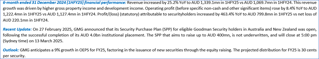 Company Overview: GMG is an ASX listed integrated property group with operations throughout Australia, New Zealand, Asia, Europe, the United Kingdom, and the Americas.