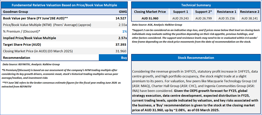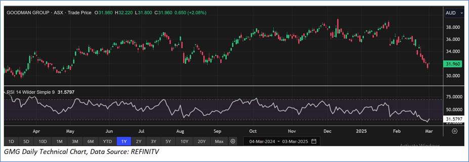 1) Goodman Group Ltd (ASX: GMG) (Recommendation: ‘Buy’ at AUD 31.960, Potential Upside: Low Double-Digit) (M-cap: AUD 63.59bn)