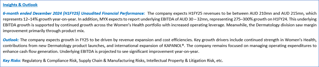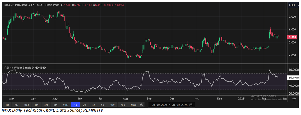 The stock has appreciated by ~18.90% in the last one month, and over the past one week, it has declined by ~1.64%. The stock has a 52-week low and 52-week high of AUD 3.740 and AUD 7.460, respectively and is currently trading below the 52-week high-low average. MYX was last covered in a report dated ‘12 November 2024’.