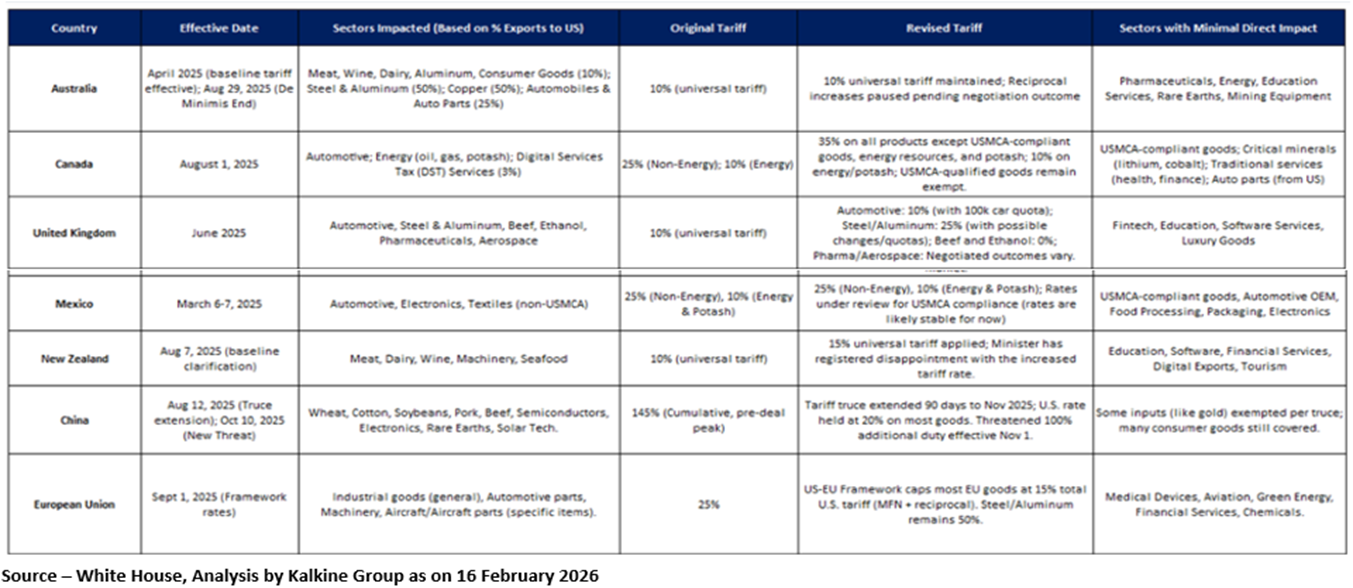 Kalkine’s Global Tariff Report provides fully independent analysis and data-driven analysis of major global sectors affected by tariff changes, evaluating the implications these shifts may have on equity valuations across those industries. The report concentrates on trade-sensitive sectors that typically experience heightened investor scrutiny during periods of tariff uncertainty. It also identifies defensive and countercyclical segments that demonstrate relative resilience or may even outperform, amid disruptions to global trade flows.