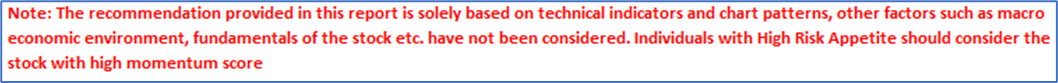 Note 3: Related Risks: This report may be looked at from a high-risk perspective and recommendations are provided for a short duration. Recommendations provided in this report are solely based on technical parameters, and the fundamental performance of the stocks has not been considered in the decision-making process. Other factors which could impact the stock prices include market risks, regulatory risks, interest rates risks, currency risks, social and political instability risks etc.