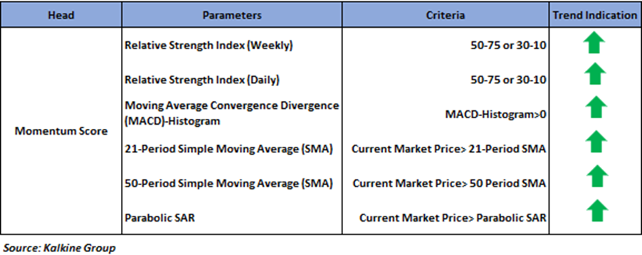 Report covers the Price Action, Technical Indicators Analysis along with the Target Levels, Stop Loss, and Recommendation on this stock. Noted below is the illustrative momentum score based on technical indicators for the stock: