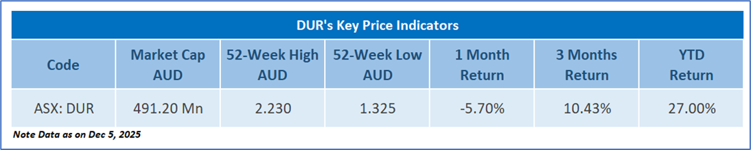 Overview: Duratec Limited (ASX: DUR) is an Australia-based contractor providing assessment, protection, remediation, and refurbishment services to a broad range of assets and infrastructure.