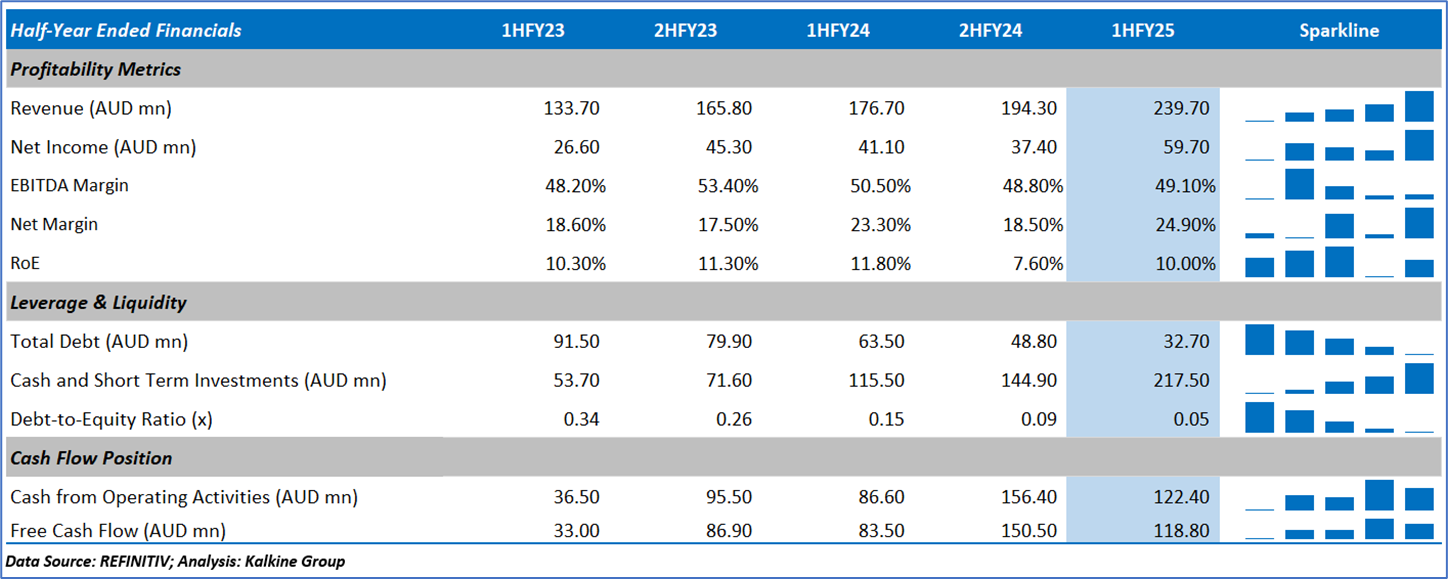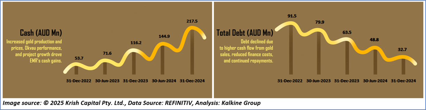 1.4: Key Metrics: EMR registered a current ratio of 2.33x in 1HFY25 compared with the industry median of 2.03x. Below is captured the metrics showing the trend of cash and total debt: