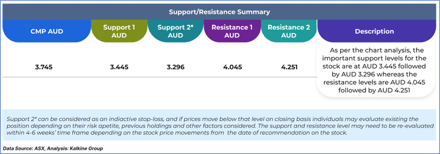 Note 3: Investment decisions should be made depending on an individual's appetite for upside potential, risks, holding duration, and any previous holdings. An 'Exit' from the stock can be considered if the Target Price mentioned as per the Valuation and or the technical levels provided has been achieved and is subject to the factors discussed above.